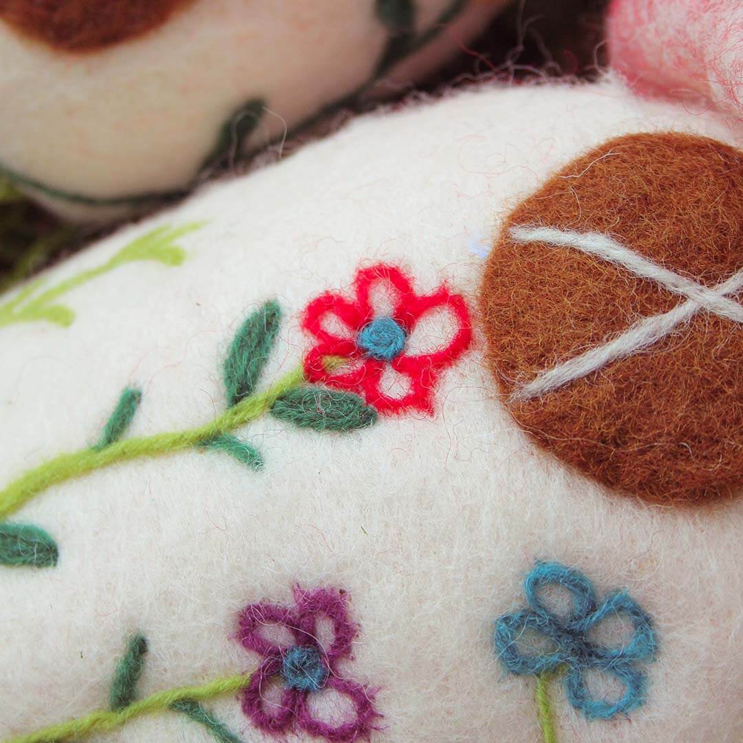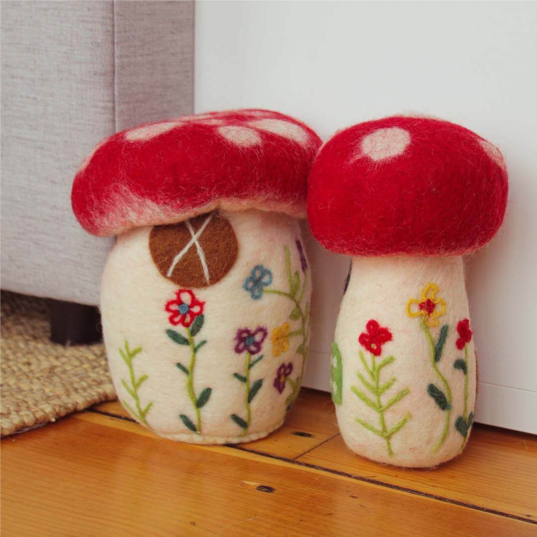 Each mushroom is lovingly made out of 100% natural wool, and each item may vary slightly because of its handmade nature.