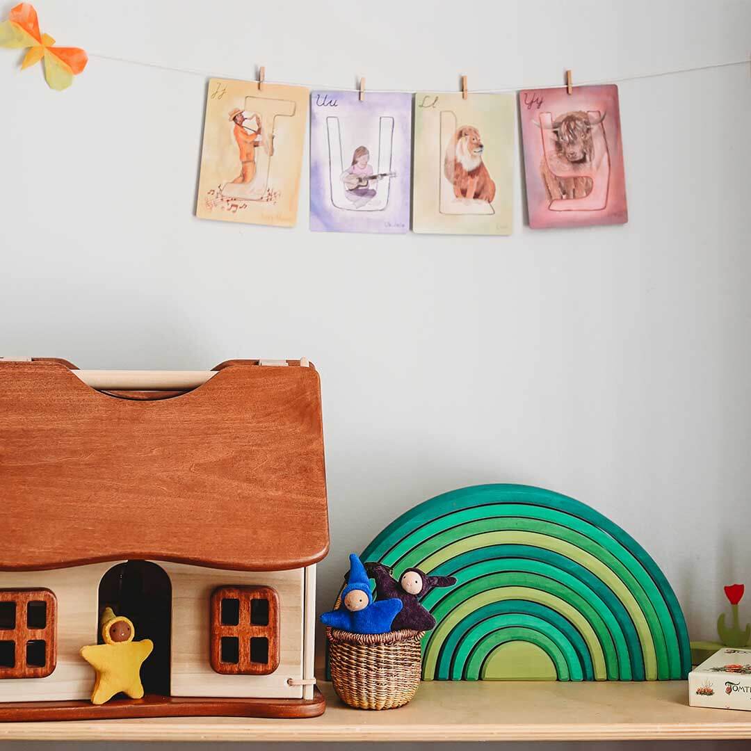 Learning letters through story and image is an essential part of the Waldorf way. These beautifully illustrated Waldorf Alphabet Letter Cards capture the spirit of story and imagination to encourage secure connections and understanding of the alphabet.